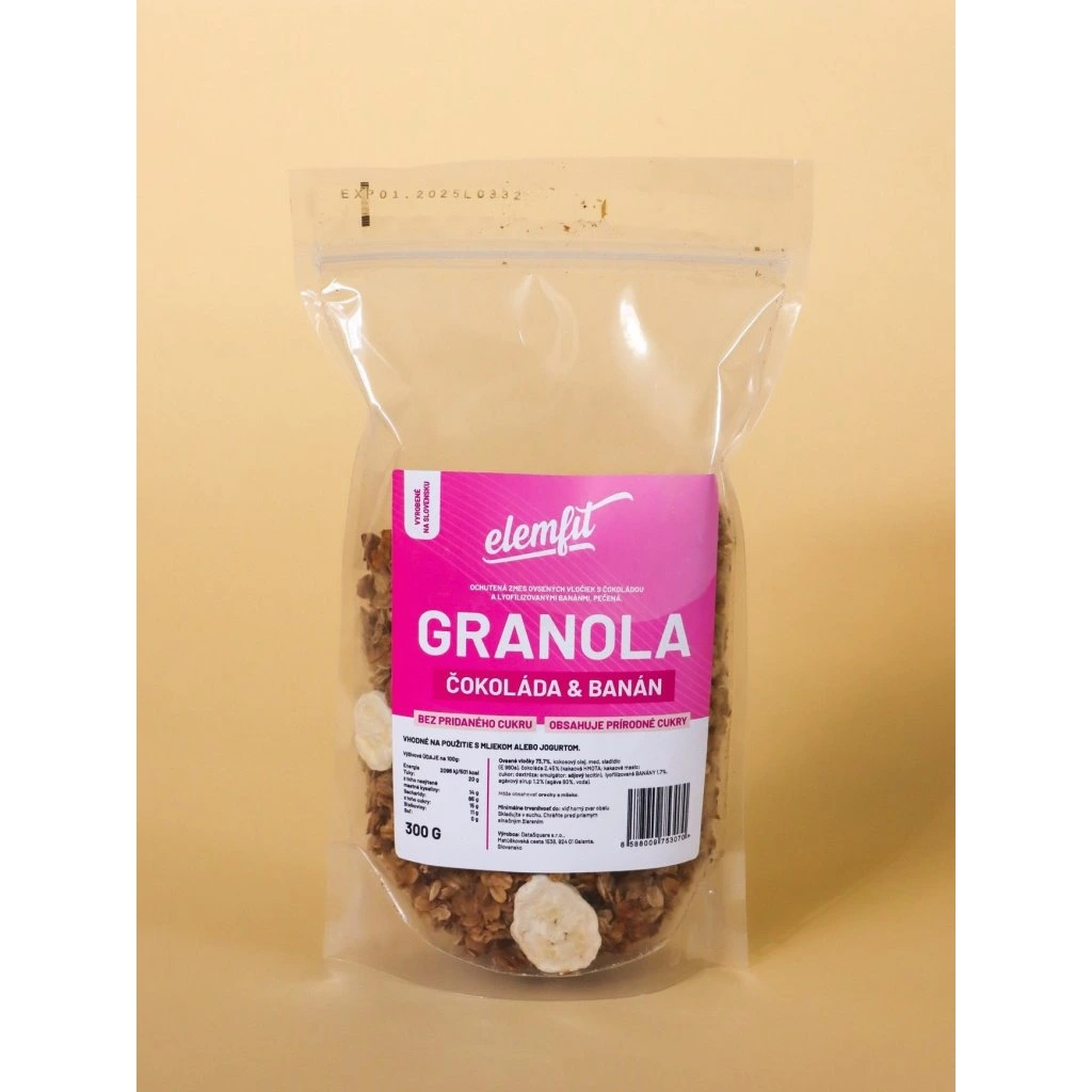 Pečená granola Čokoláda & Banán – extra křupavá a lahodná, slazená pouze medem. Bez přidaného cukru, bohatá na vlákninu a ideální do jogurtu či jako snack.