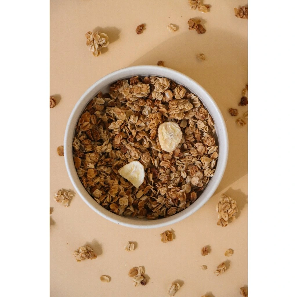 Vychutnej si granolu s bílým nebo rostlinným jogurtem, mlékem, nebo jako křupavý topping na smoothie bowl. Skvělá i jako zdravé mlsání kdykoliv během dne.
